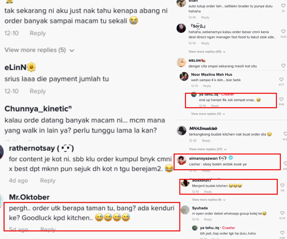 Netizens took to the comments section to give their thoughts on the situation. Many were baffled as to why this customer is spending so much money on McD, while others felt sorry for the kitchen staff having to prepare virtually a lifetime’s worth of food. According to the TikTok creator, the man apparently ordered up to RM6K worth of food and drinks!