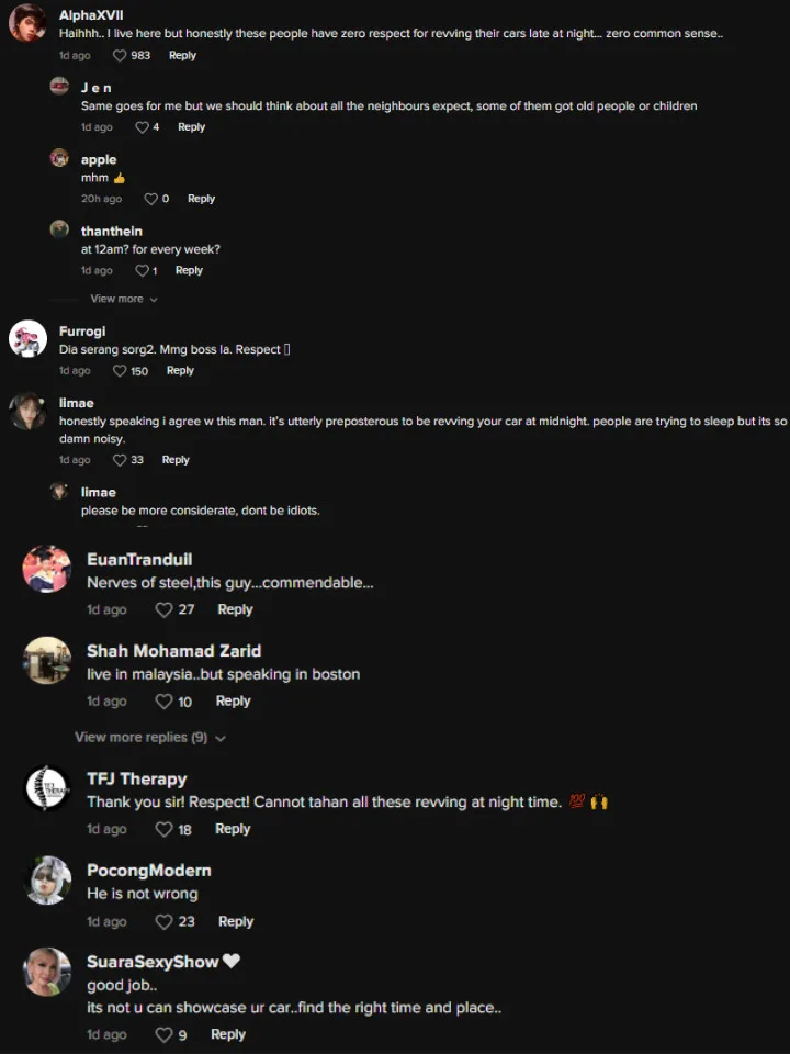 After the video was posted, the man was praised by netizens, with many calling his actions justified and how he was brave for standing up against the group on his own. Many who sided with the man also urged car enthusiasts to be more considerate in the future. One commenter even said, “It’s not (that) u can’t showcase ur car.. (but) find the right time and place..”.