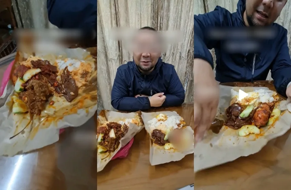 He proceeded to open the second packet of nasi lemak which was surprisingly, slightly more expensive than the first. “This one was RM22. The only difference from the first one is that this one has rendang and no fried egg. Extra rice as well,” said the content creator while comparing the two packets. Combining the prices, the nasi lemak dishes cost him RM40!