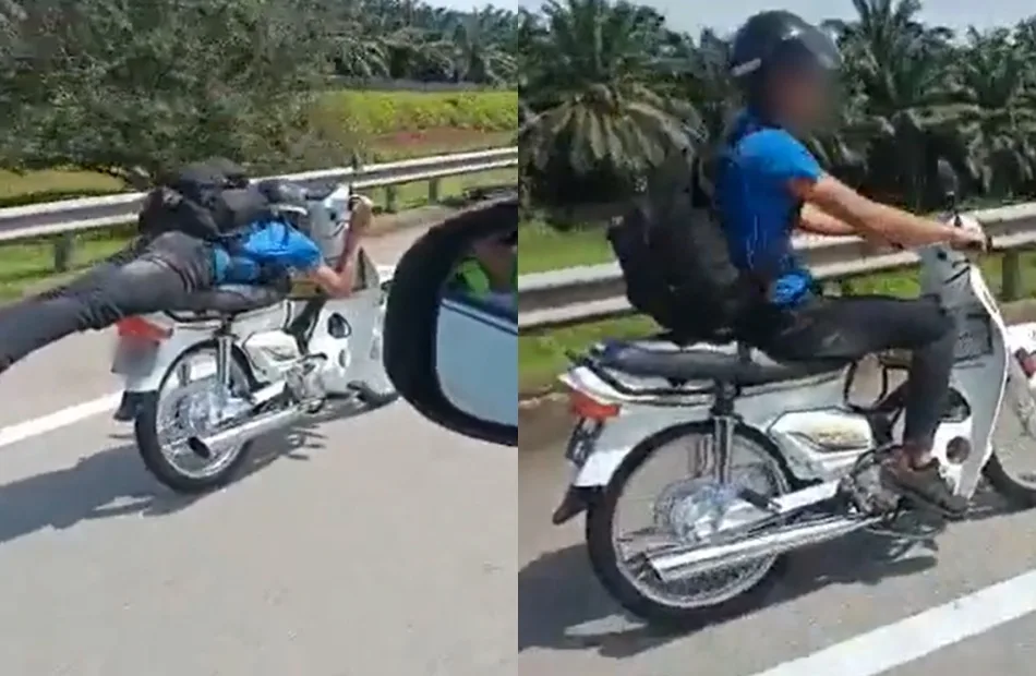 According to Kosmo, the incident took place at Pantai Timur Highway nearby Jabor Toll Plaza.  Netizens very much enjoyed seeing the man panicked after being caught on camera by the authorities themselves. Some found it humorous that the motorcyclist was so immersed in his stunt that he failed to even notice the police.