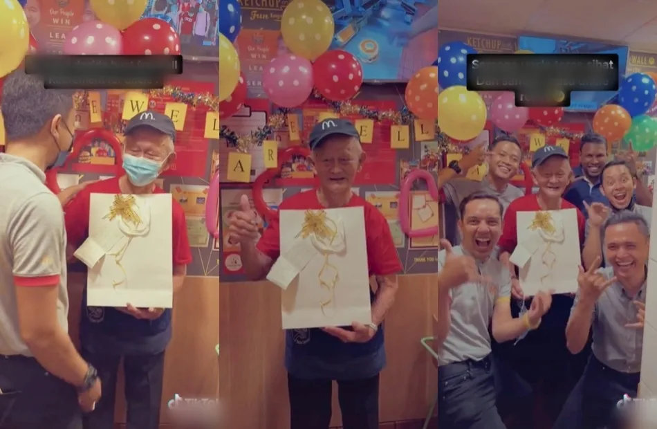 Afiq Raffali or @afiqraffali on TikTok posted a heartwarming video of a farewell party for his oldest colleague who is ready to retire. The Mcdonald’s employees decided to send the 87-year-old man off by celebrating him and rewarding him for all his hard work over the years.