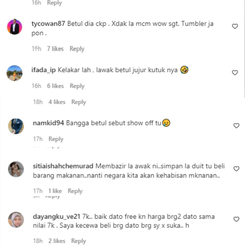 The director then bet he could find a similar looking tumbler online for RM10. While he was at it, the “I Am Me” singer took the chance to promote her Pamoga products. Michael advised her viewers to only buy Pamoga and not waste money on a RM7k tumbler. “Only crazy rich people would buy something like this!” he said. Although entertained, netizens agreed that her purchase was extremely wasteful.