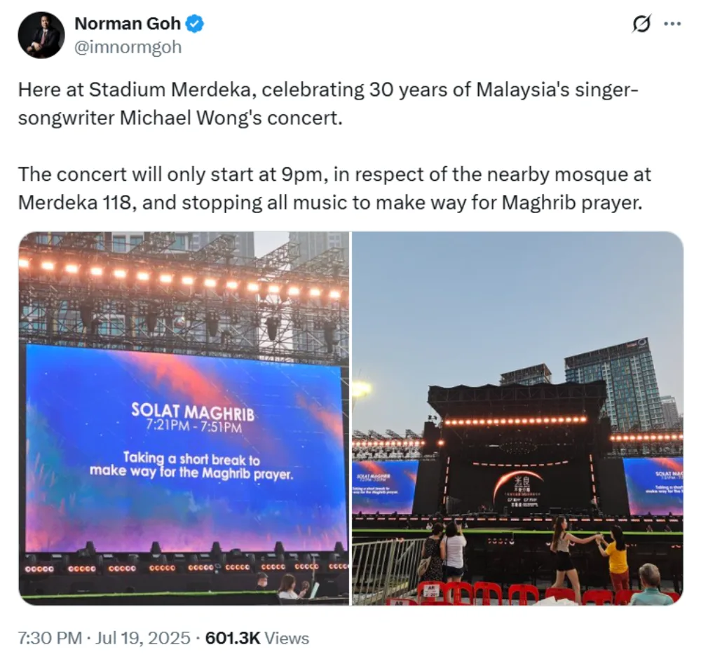 Interestingly, the singer and his concert also received praise for a respectful gesture. On Twitter, journalist Norman Goh revealed that both concerts started at 9pm to respect the Maghrib and Isyak prayers. The crew also paused the music at the venue during the Azan. Many netizens praised Michael and the concert organiser for respecting religion during the show and for showing cultural sensitivity.