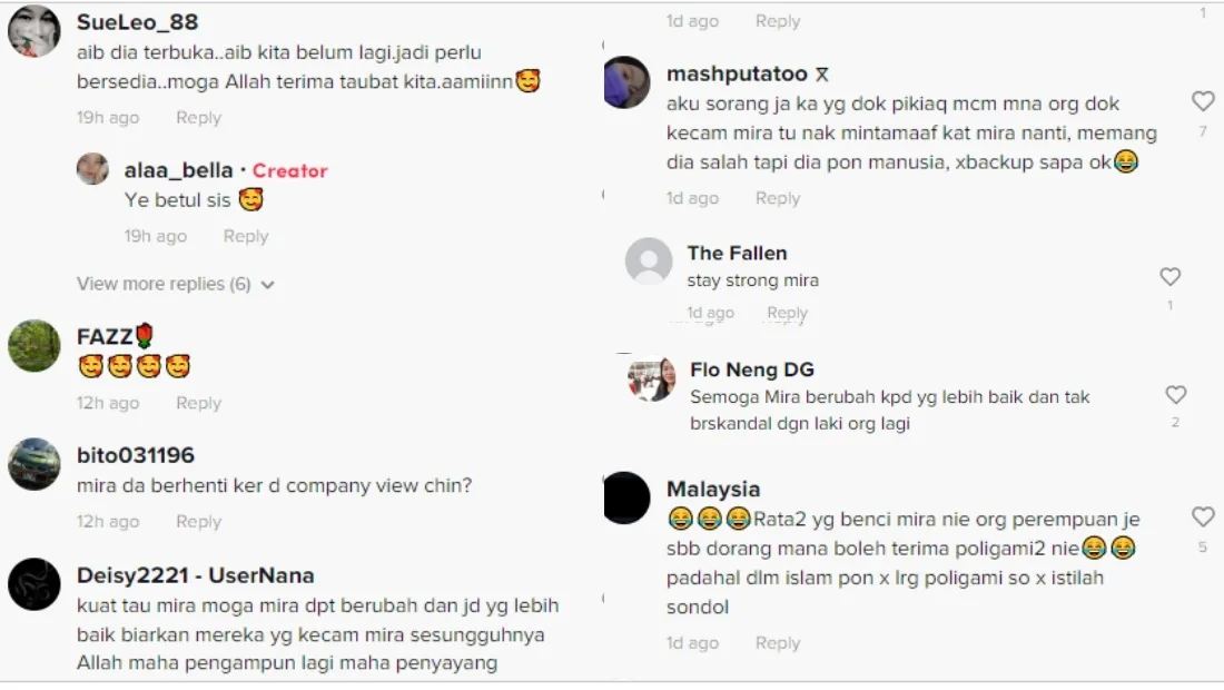 Mira recently appeared as a guest host on a TikTok live stream with Datin Dr. Sumitra on the official @farmasieverlife channel. A clip of the stream was reposted by a netizen where it was shown that the entrepreneur received a lot of negative comments from netizens.