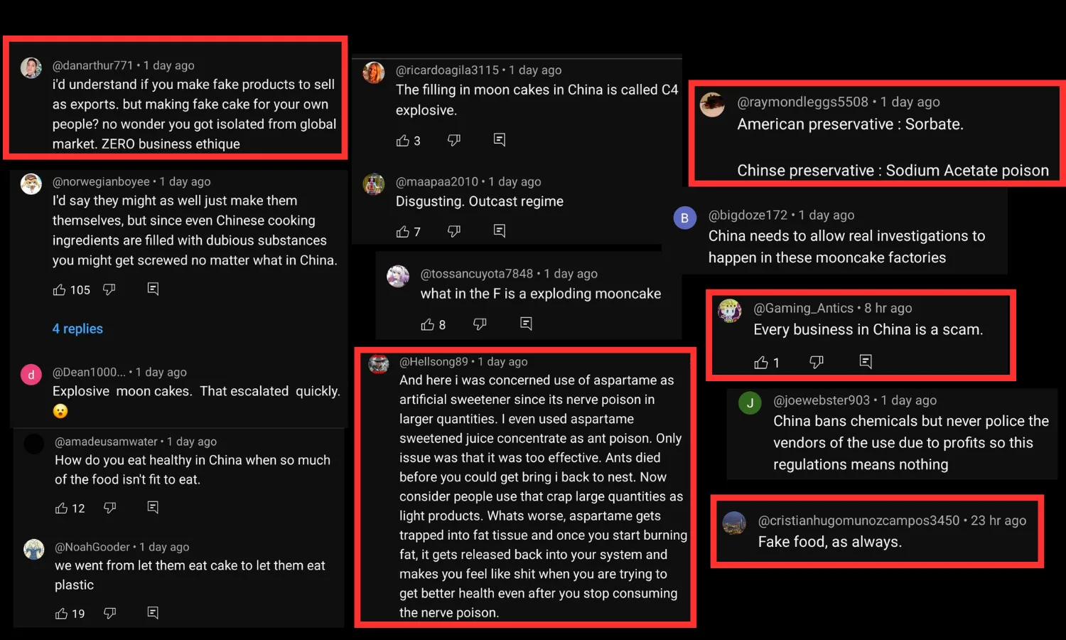 The majority of netizens speculated that this incident occurred because products made in China are often viewed with suspicion, as they are notorious for having food items that may contain fake ingredients or unknown substances. Many commented that business practices in the country are nothing but a scam.