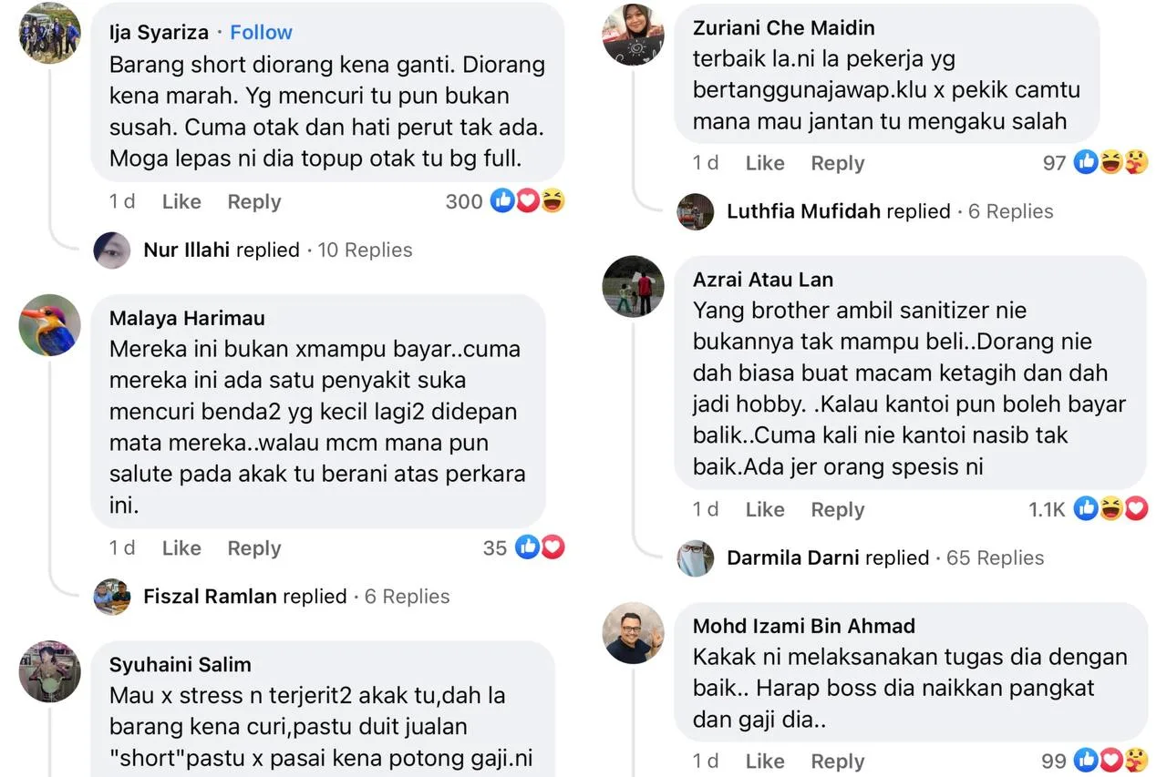 The reposted video has amassed more than 20k likes and 700k views altogether. It has gathered various reactions from netizens, with the majority siding with the female employee. Netizens understood why the employee was furious as seen in the video. After all, she might be held responsible if anything goes missing from the store.