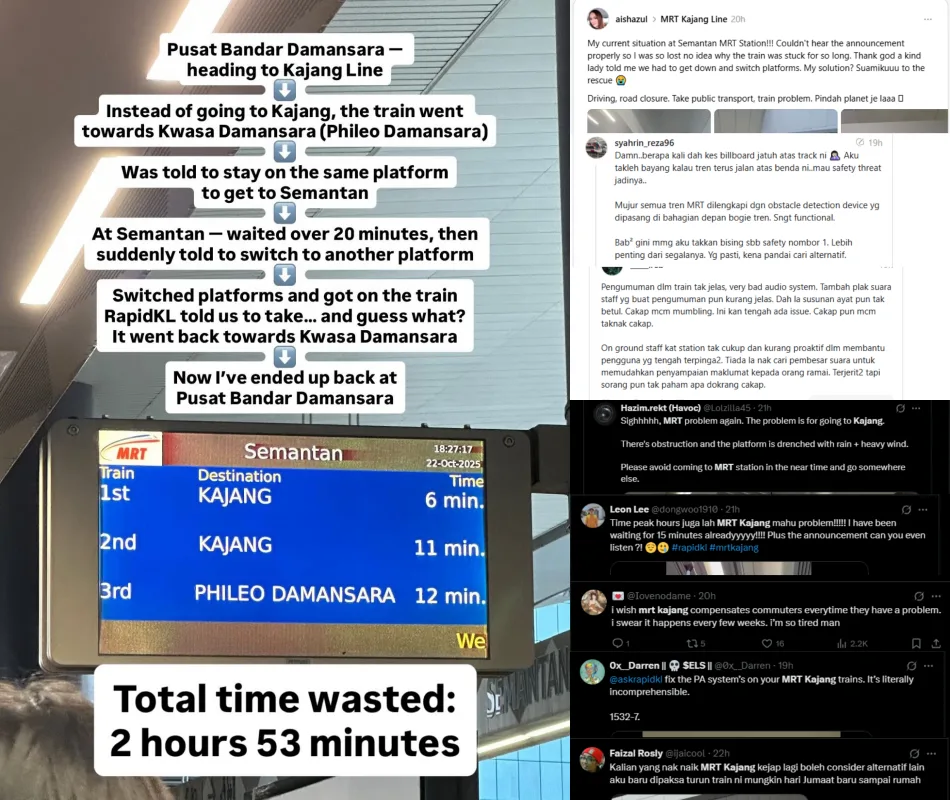 In addition, the disruption caused severe overcrowding on platforms along the MRT Kajang Line, leaving staff with no choice but to stop new arrivals from passing through the payment gates. Some passengers also reported that the trains had briefly moved in reverse, which further delayed their estimated arrival times.