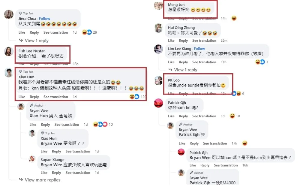 Netizens were definitely amused by the content creator’s travel vlog, mostly reacting to his wish to Yue Lao. One netizen said Yue Lao must be confused about whether to grant a male or female partner for the cross-dresser. Others pointed out the expression that the locals had on their faces when encountering the content creator, laughing at their reactions.