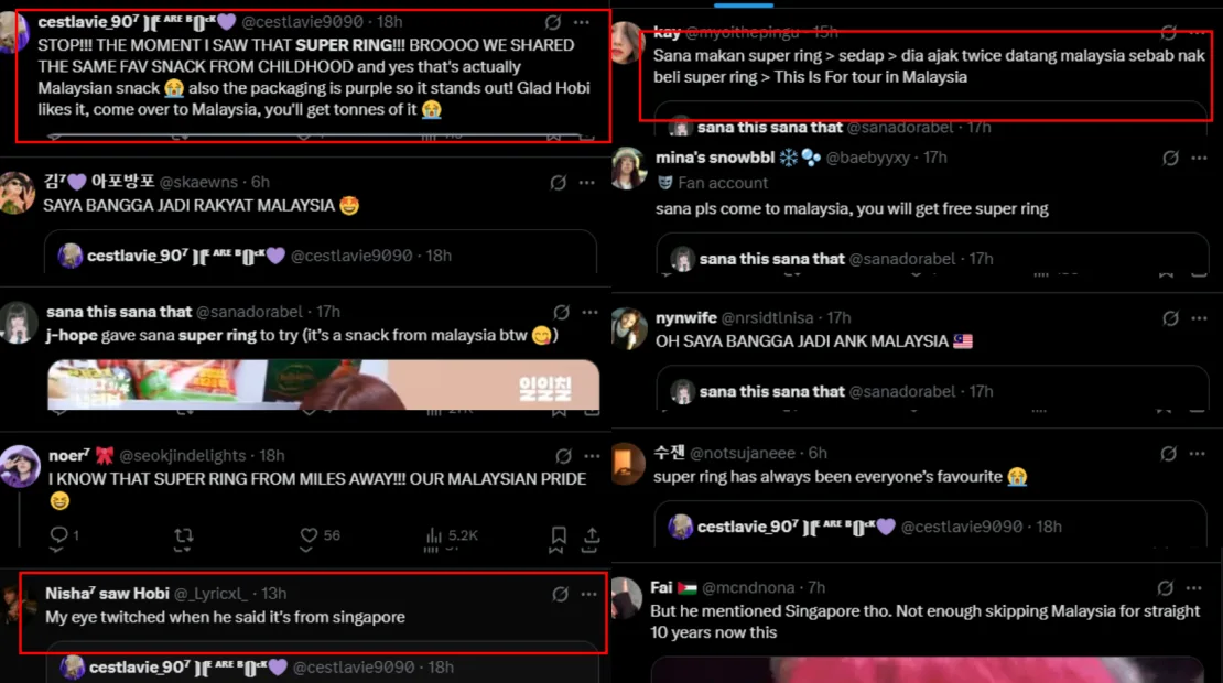 The moment quickly went viral, with Malaysian fans expressing their excitement over the Super Ring mention. Many commented that if J-Hope were to perform in Malaysia, he could have all the Super Ring snacks he wanted, as they’re available in almost every convenience store across the country. Others, however, expressed disappointment that the idol didn’t specify the snack’s Malaysian origin, noting that he only mentioned picking it up in Singapore.