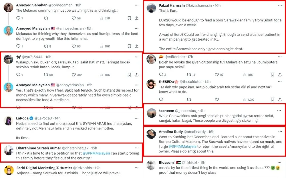 Unsurprisingly, netizens who watched the video slammed Nizar for the shameless and insensitive display of wealth. Many called it a mockery of Sarawakians’ hardships as he and his family lived in luxury. Many netizens also called for authorities to investigate or revoke their citizenships, fearing that he would continue to take advantage of the status. Some netizens also said they were glad that more information about Raghad and her sons was resurfacing, hoping it would lead to Sawarakians taking action towards the family.