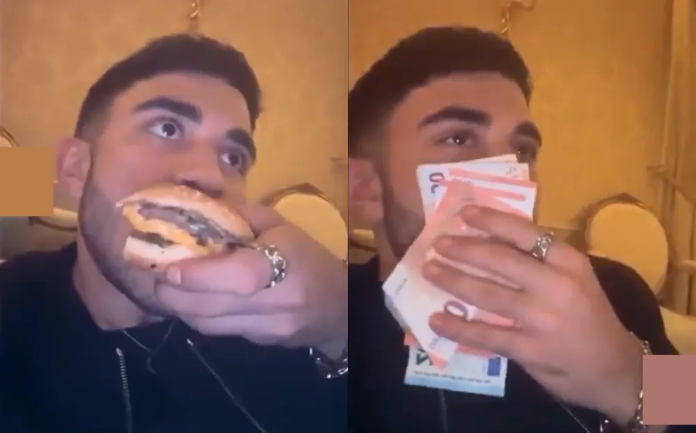 Reminder that Taib Mahmud's "bumiputera Melanau" stepson (Raghad's son) ate a burger on TikTok & wiped his mouth obnoxiously with cash that probably belongs to the people of Sarawak. 🤮 (Video credit: Sarawak Report) https://t.co/VohGV794vV pic.twitter.com/NdSR3Gs61X