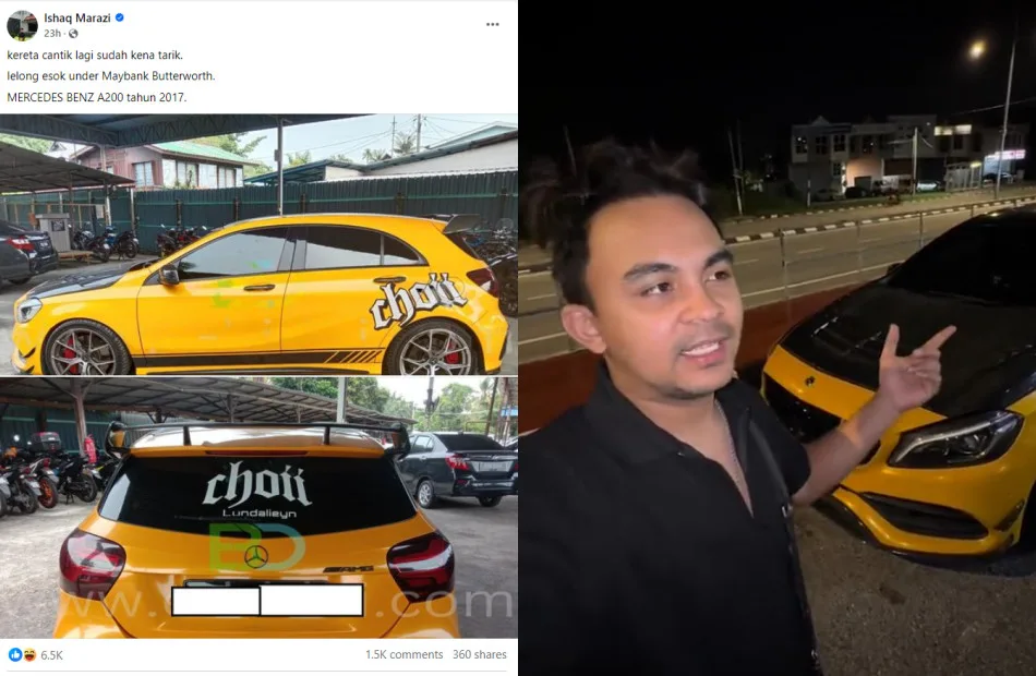 Yesterday (Wednesday, 9th October), a Facebook user named Ishaq Marazi posted photos of a Mercedes-Benz A200 belonging to Faris Azri, the founder of the clothing brand Choii. The post claimed that the vehicle was to be auctioned off under Maybank Butterworth, attracting many car enthusiasts interested in purchasing it.