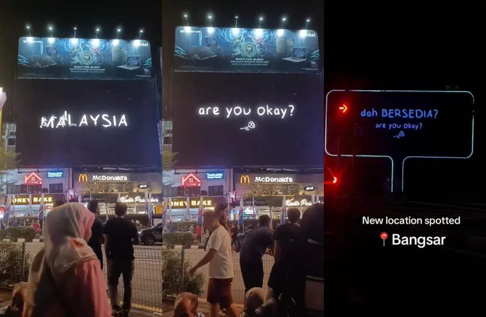 Over the weekend, a fan posted on both his TikTok and Twitter accounts about something he encountered while out in Bukit Bintang. In the video, he captured a large digital billboard above the McDonald’s outlet briefly displaying the words “Malaysia, are you okay?” alongside an image of a rose, before switching back to the regular advertisements.