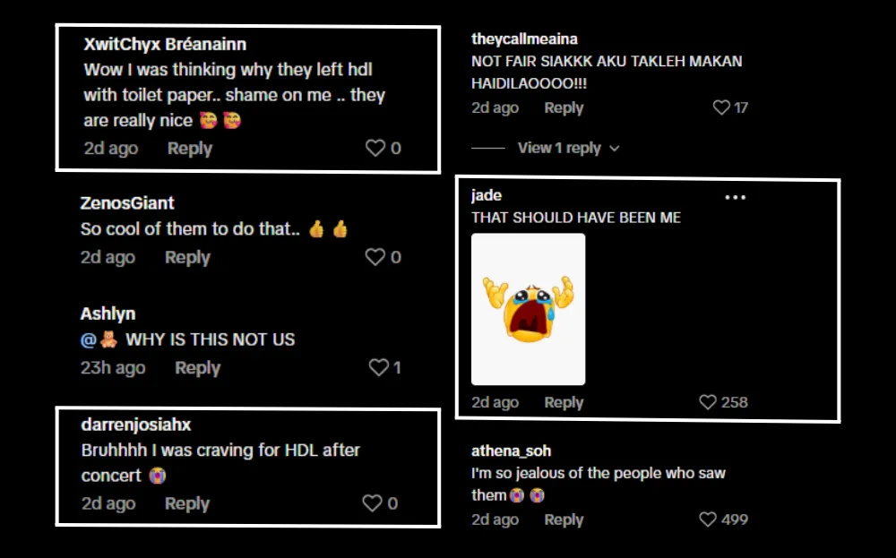 Many international fans couldn’t help but feel a twinge of envy after seeing the viral clips. One fan jokingly said they thought the long receipt was a roll of toilet paper, while others regretted not dining at Haidilao that night. Social media quickly filled with amused reactions and light-hearted jealousy over the group’s generous gesture.