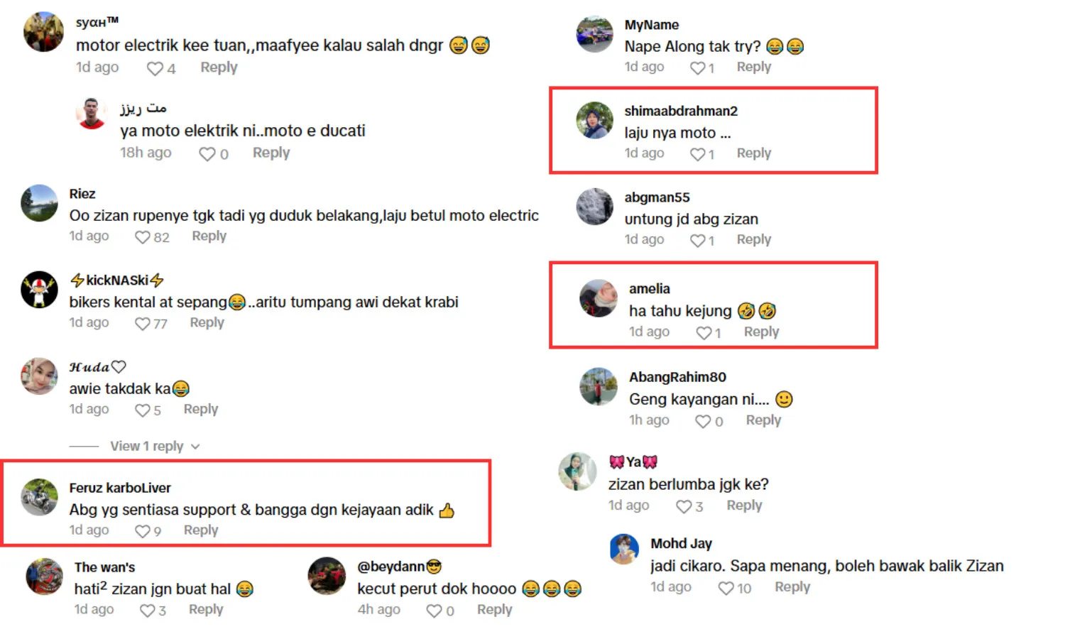 Netizens were amused by the short clip of the “Polis Evo” actor living out his dream, with many joking about how nervous Zizan appeared when the bike picked up speed. Others expressed their admiration for his bravery, noting that it was impressive for a non-professional to try such a risky activity given the potential for accidents. While some couldn’t help but point out the unwavering support from Zizan’s brother, who is always by his side.