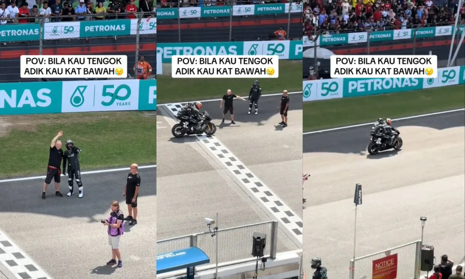 In the 47-second video, Zizan is seen decked out in a complete MotoGP racing suit, including boots, gloves, and a helmet, as he waits for his turn on the track. True to his fun and outgoing nature, he playfully asked a staff member beside him to wave to the camera when he spotted his brother in the crowd.