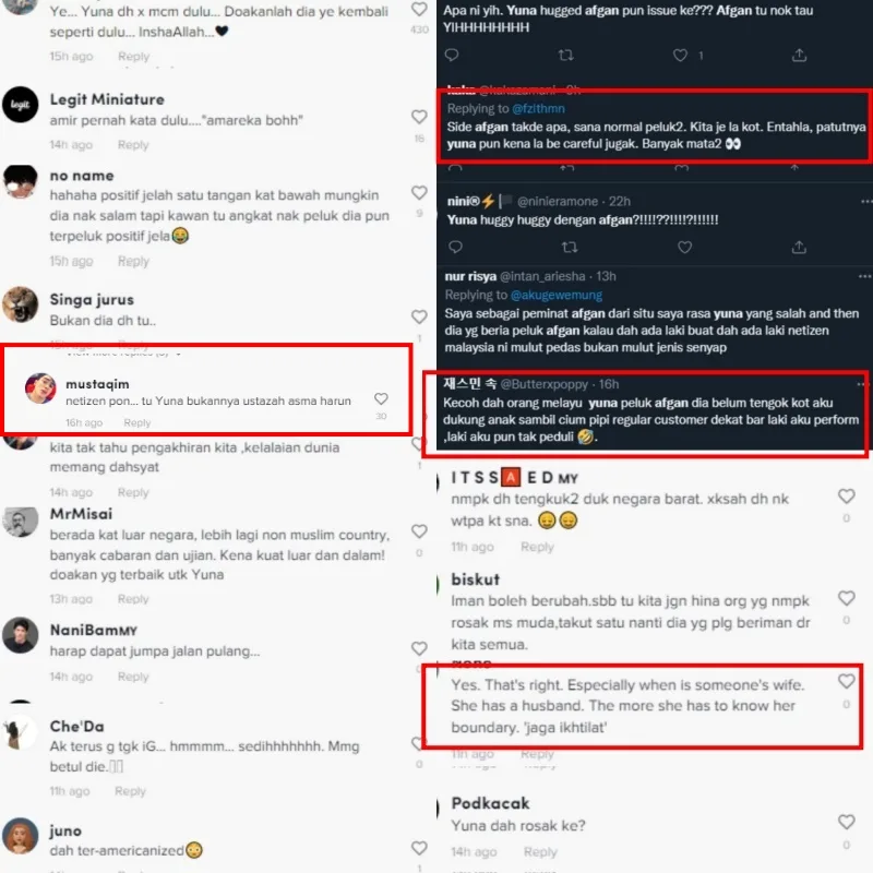 Malay Muslim celebrities are always subjected to something that is considered haram in Islam. Recently, influencer Coki was caught with a girl sitting on his lap in a car and prior to that, actress Sharifah Sakinah was criticised for shaving her head. Netizens have a lot to say about Yuna after she was recently spotted hugging a fellow singer at New York Fashion Week.