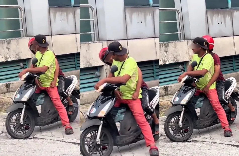 Upon closer inspection, the passenger in red was seen grabbing and caressing the rider’s crotch in broad daylight. The rider in the video appeared to be unfazed by the “intimate” gesture as if it was a normal occurrence for him. Unfortunately, there has been no additional information on when or where the video was originally taken but judging from the building in the background, it’s very likely that it was taken somewhere in Klang, Selangor.