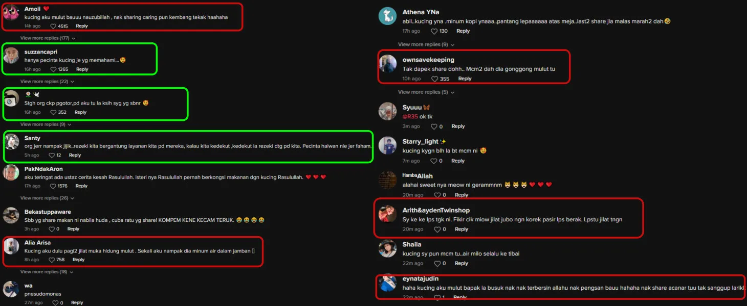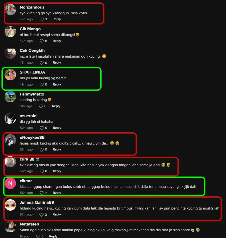 The comments section was flooded with tons of responses from netizens. “Meanwhile, my cat’s breath smells like (OMG). I feel like throwing up,” one netizen commented. “Back then, I was fine with sharing my food with my cat. But after I saw it carrying a lizard in its mouth, I’ve horrified,” another user on TikTok wrote.