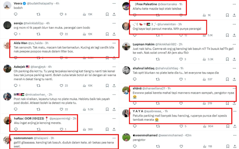 The video was reuploaded on Twitter, where many netizens slammed the man for his indecent behaviour. Many had also called him uncivilised, equating his behaviour to that of an animal. Since the man was driving a Mazda, many even said the man was proof that wealth can’t buy manners. Many also pointed out that the man did not clean up after himself after urinating, leaving them more disgusted.