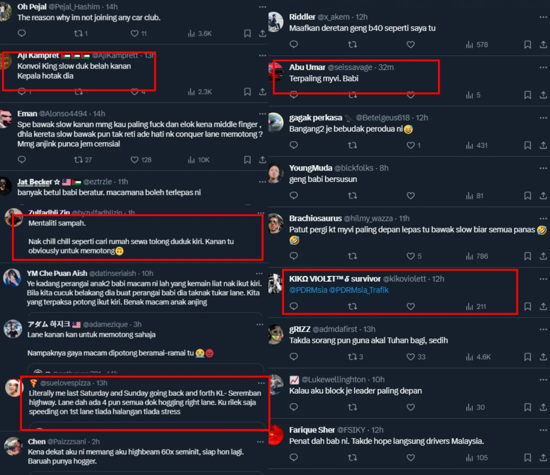 A few shared how they’ve experienced similar incidents of road users driving rather slow on the right lane that they had no choice but to overtake them using the left lane. Others tagged the Royal Malaysian Police (PDRM) and Road Transport Department Malaysia (JPJ) to look into the situation and take action against those hogging the road.