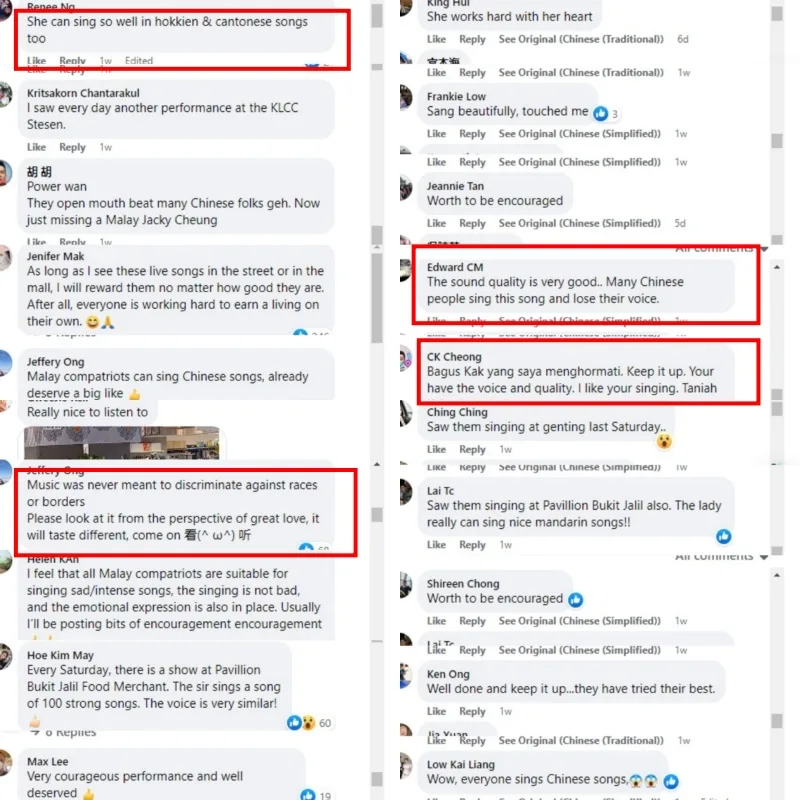 The busking couple is apparently known to perform contemporary and classic Chinese songs including the popular ballad “The Moon Represents My Heart” by the late Taiwanese singer, Teresa Teng. Netizens were very much impressed by the duo’s performances and left supporting comments on the viral videos. According to some of the comments, the woman can also sing songs in the Hokkien & Cantonese dialects as well.