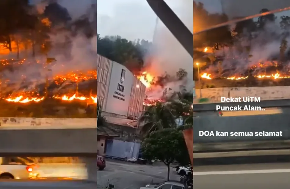 According to reports, a fire broke out in a forest area within Taman Perdana Heights, located near the Universiti Teknologi MARA (UiTM) Puncak Perdana Campus. The incident is believed to have occurred at around 4:15pm.