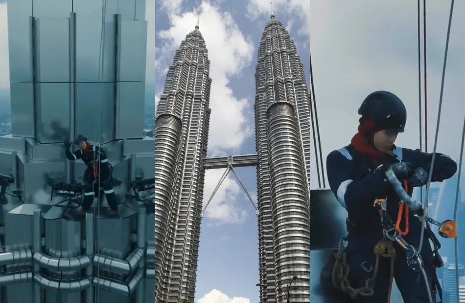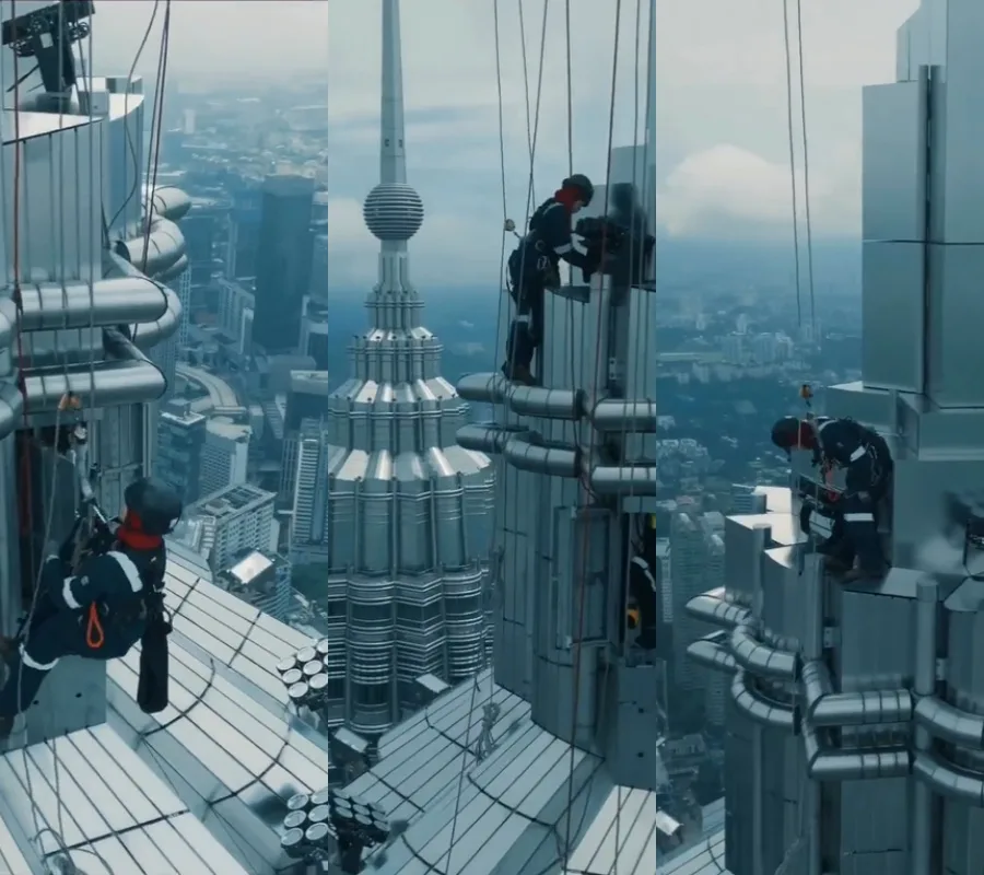 (Video) Netizens React To “Iron Lady” Changing Lightbulbs On Top Of Petronas Twin Towers