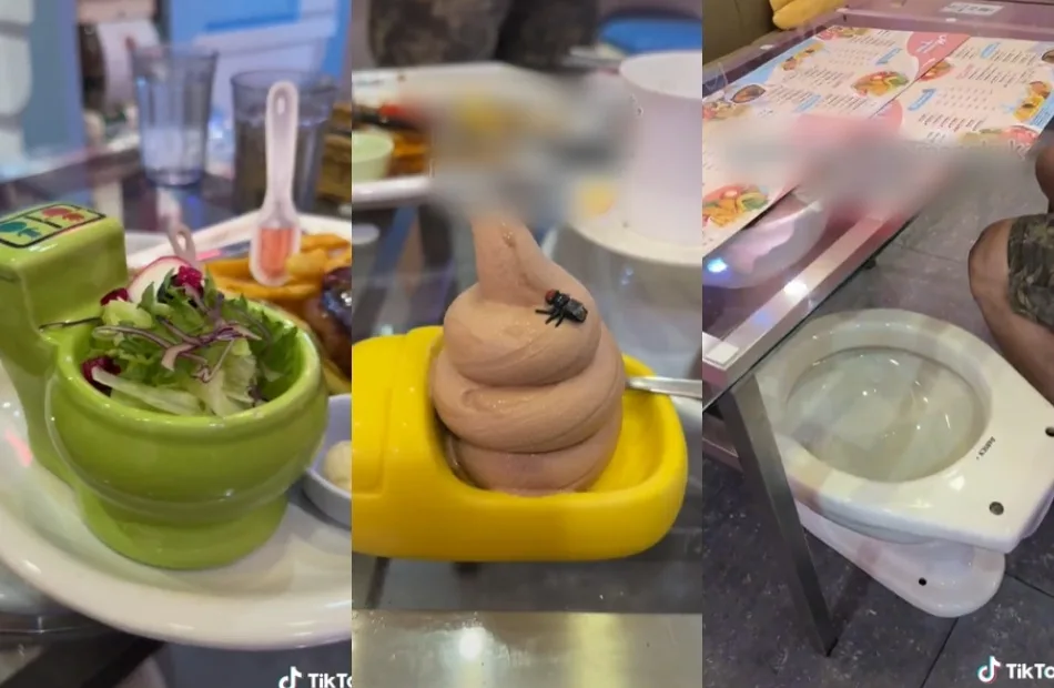 A TikTok video posted by user @airieysayuti20 showed a Toilet-themed cafe currently going viral with 1.3 million views, 83.4k likes, and 2.6k comments. The Malaysian TikToker showed his followers around the very unique cafe where we can see that the tables have toilet seats instead of chairs and the sofa seats have poop-shaped pillows on them. “I bet you guys feel disgusted to eat out of a toilet bowl right? 😂” he captioned the video.