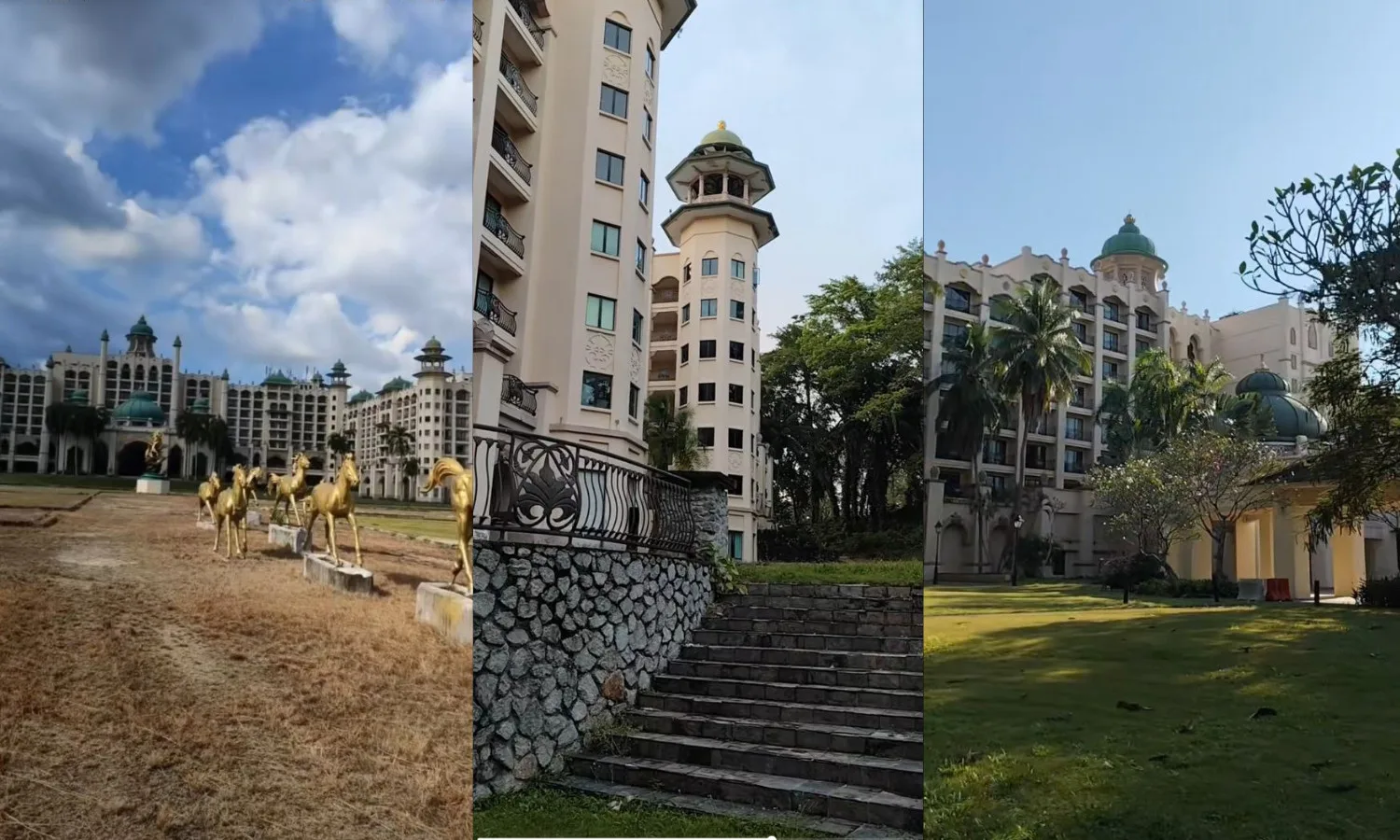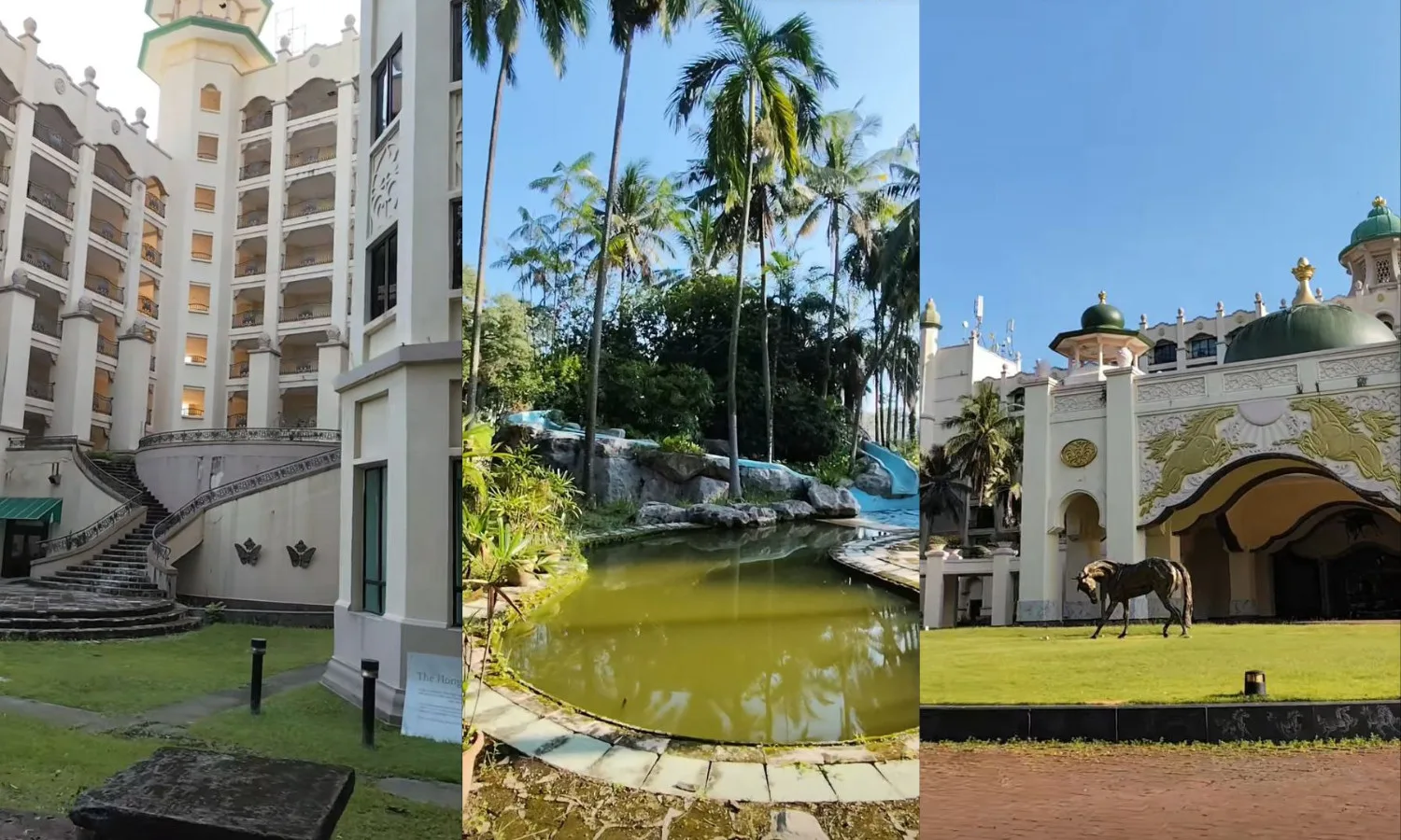 Once hailed as “Asia’s Most Extraordinary Hotel,” the interim now-disused building still features its iconic golden horse statues scattered around the area, as seen in the now-viral videos. Despite mould and moss covering parts of the walls, the hotel’s structure remains intact and relatively well-kept, considering it’s unoccupied. Overall, the site exudes a spine-chilling atmosphere, resembling a post-catastrophe castle with its massive and looming architecture.
