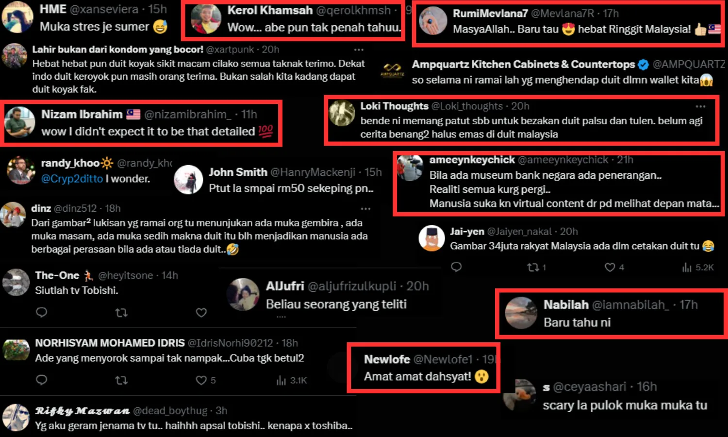 Malaysian netizens responded to the reposted video on Twitter, expressing their disbelief at the details they never knew existed on the RM50 note. One user commented that this feature helps differentiate genuine currency from counterfeit notes, including the gold print on the note.