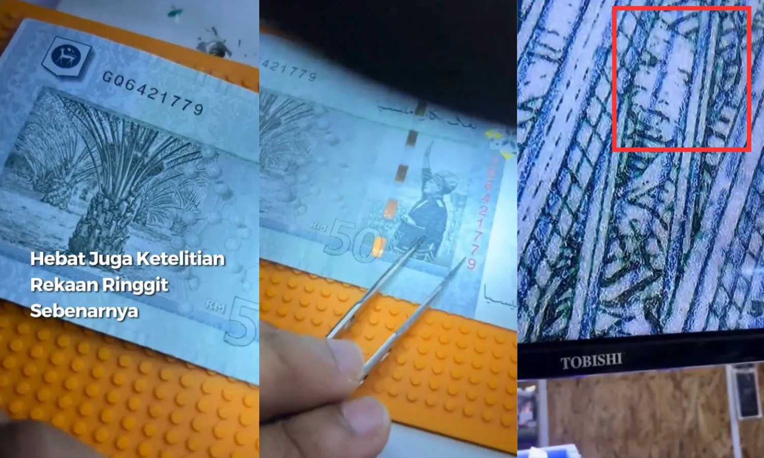 With the caption, “The other day it was the passport; this time let’s see the detail on the banknote,” the user showed the features that went unnoticed by most Malaysians. Using a sharp tweezer as his pointer, the individual then zoomed in on the note using a camera, which can then be seen through his monitor.