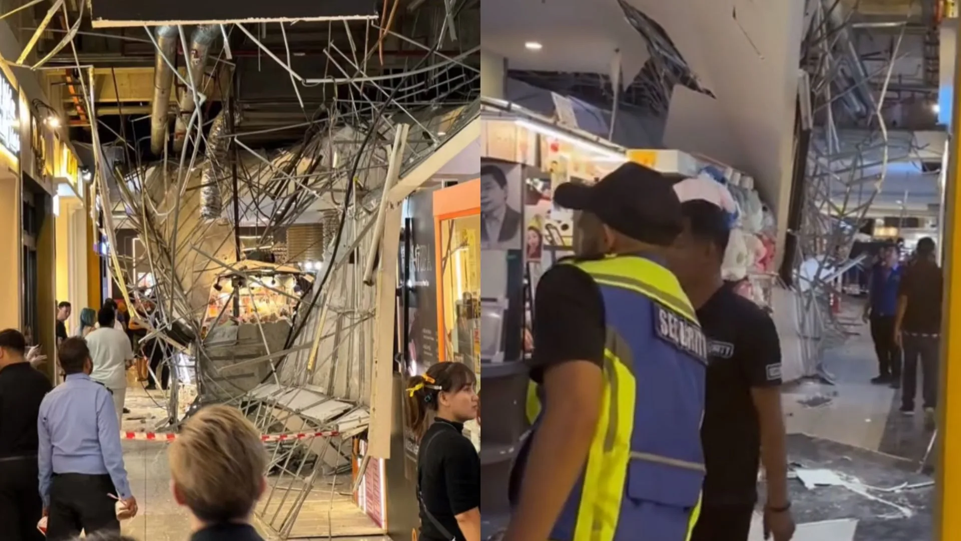On Sunday (9th March 2025), shoppers in KSL City Mall in Johor Bahru were met with a terrifying incident where the ceiling and floor became one. At around 7pm, debris and metal struts caved in onto the corridor, stalls, and in front of the shop lots on the first floor of the shopping complex.