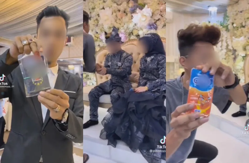 In the video, they each took turns to hand the groom one pack of condoms. The groom looked embarrassed while his bride looked confused and uncomfortable throughout the whole episode but still tried to stay calm and smile for the camera. Netizens reacted to the viral video by condemning this group of friends for pulling this prank during the couple’s wedding ceremony.