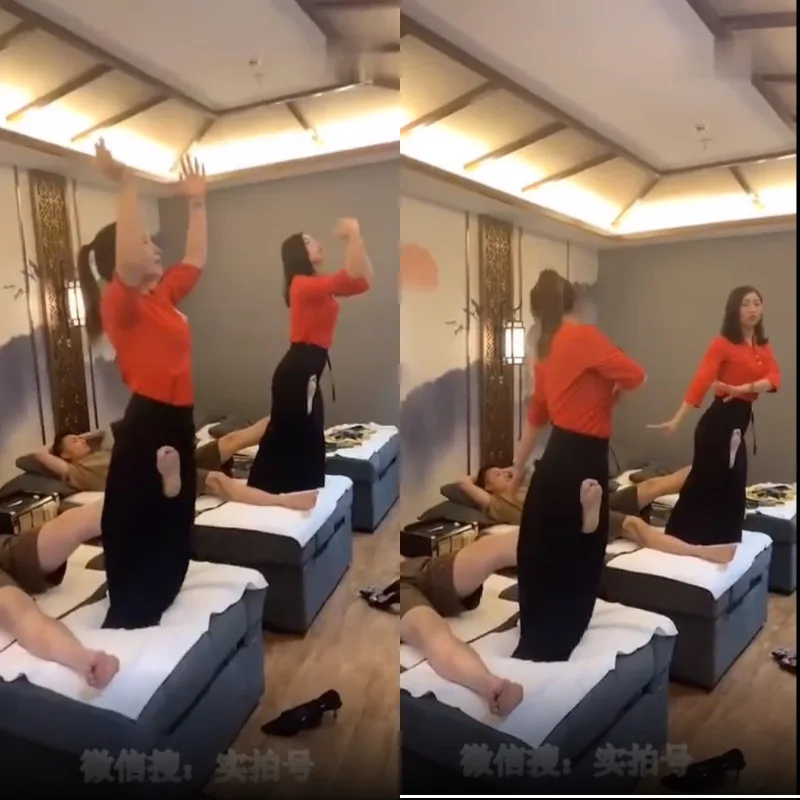 This new service’s name has yet to be revealed, but it’s certainly eye-catching enough to be remembered! To begin with, the customers would lay on the massage table with the masseuse standing at the edge of the bed.