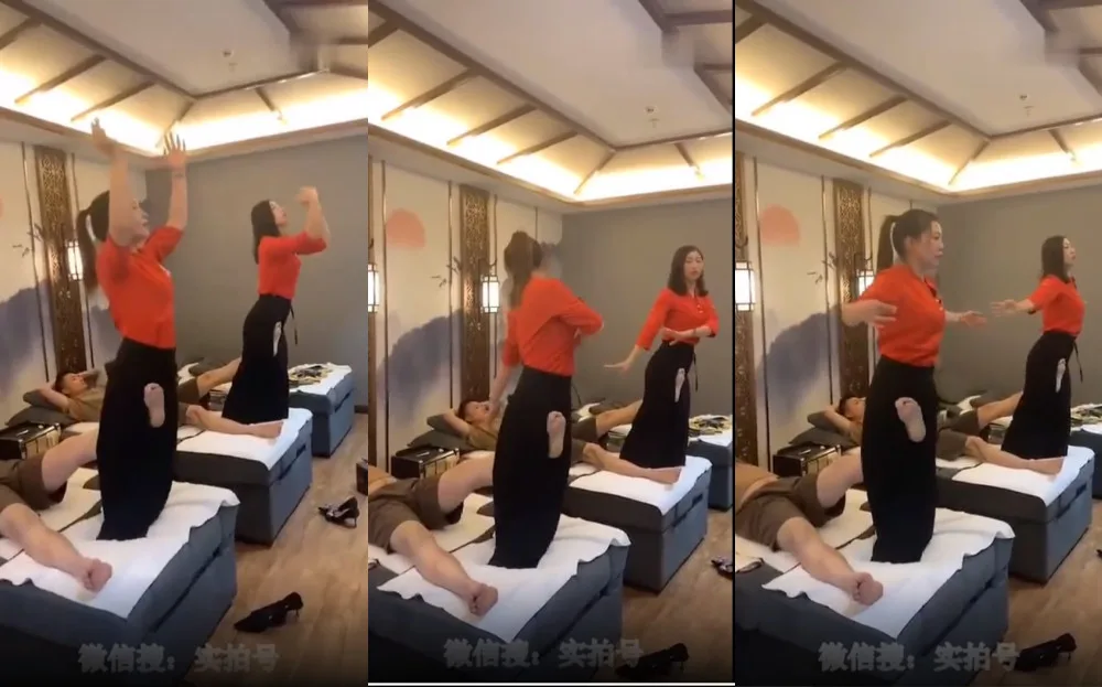 This new service’s name has yet to be revealed, but it’s certainly eye-catching enough to be remembered! To begin with, the customers would lay on the massage table with the masseuse standing at the edge of the bed.
