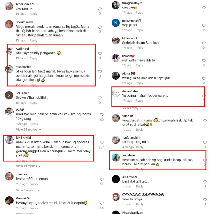 The TikTok post went viral with netizens being amazed by the creative door gift. Some praised the newlyweds for their generosity as they believe a Tupperware filled with groceries cost more than the usual door gifts filled with sweets or small ceramics. Others also shared that they’ve received similar gifts at other weddings as well.