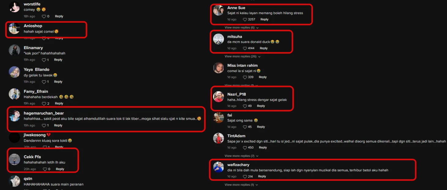 Netizens were entertained by Sajat’s on-point impression of the singing legend. “Turning on Sajat’s live broadcasts help me relieve my stress,” one commenter remarked. Another commentator added, “My tummy hurts (from laughing too much) after seeing her copying TokTi’s speaking voice. May Sajat and the rest of us always stay healthy.”