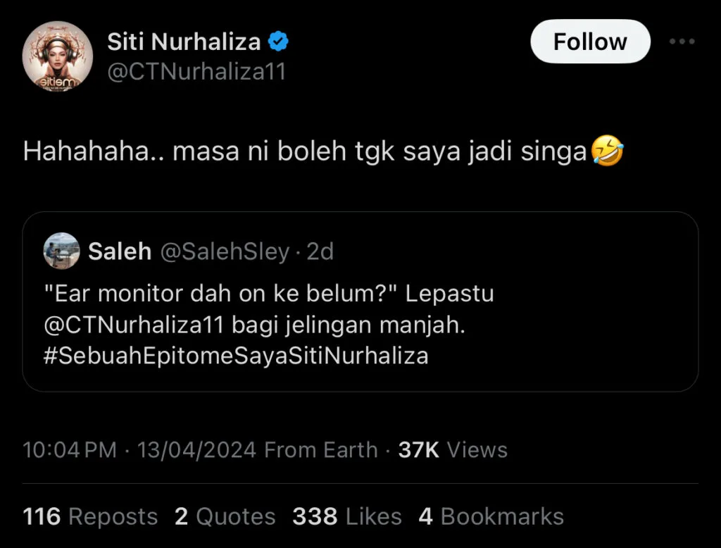 When it comes to Siti, fondly known as TokTi, no one could get angry or take fault with her. Netizens commented on both her TikTok and Twitter posts saying that they found the entire thing humorous and commended her for taking her craft seriously and wanting her performance to go off without a hitch.
