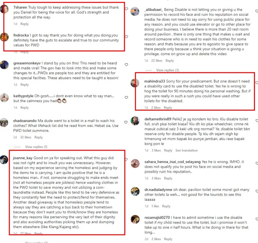 Netizens’ opinions are torn after watching the videos. Many agreed with Daniel that there should some consequences for people who take advantage of these facilities while others pointed out that one does not necessarily need an OKU card to be able to use the OKU restrooms. There were also those who disagreed with the decision to film the man during the confrontation.
