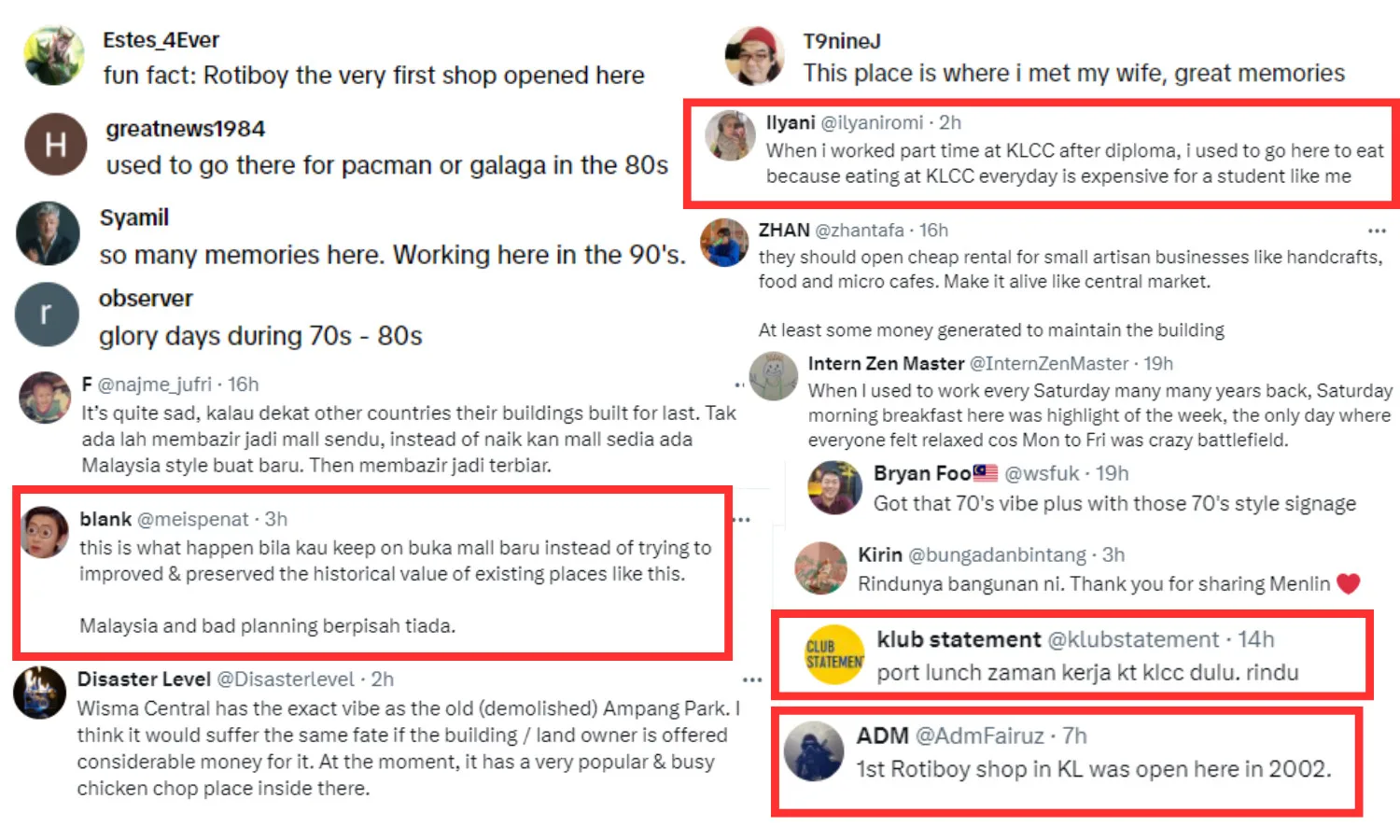 The video naturally prompted netizens to share their cherished memories of the mall. Many commenters reminisced about grabbing lunch at the food court during their workdays, while others expressed disappointment over the neglect of Malaysia’s antique buildings. Some viewers even pointed out a fun fact—Wisma Central was home to the first-ever Rotiboy store, adding to its iconic status.