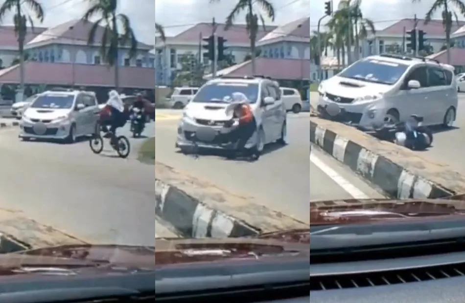 Earlier on Friday (11th August), a video was posted on the @mynewshub Twitter page that showed a road accident involving a car and a schoolgirl on a bicycle. In the dashcam recording, a white Perodua Alza was seen exiting a junction when suddenly a student riding her bicycle appeared right in front of it.