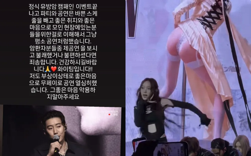 Singer Jay Park (박재범) also sparked outrage with his performance of “MOMMAE”, which contained racy lyrics about a woman’s breasts. Many slammed him for sexualising women at a breast cancer awareness event. ALLDAY PROJECT (올데이 프로젝트) also faced criticism after the screen displayed an image of a woman exposing her behind during their performance. However, some netizens argued that this issue was the fault of the event’s audio-visual team.