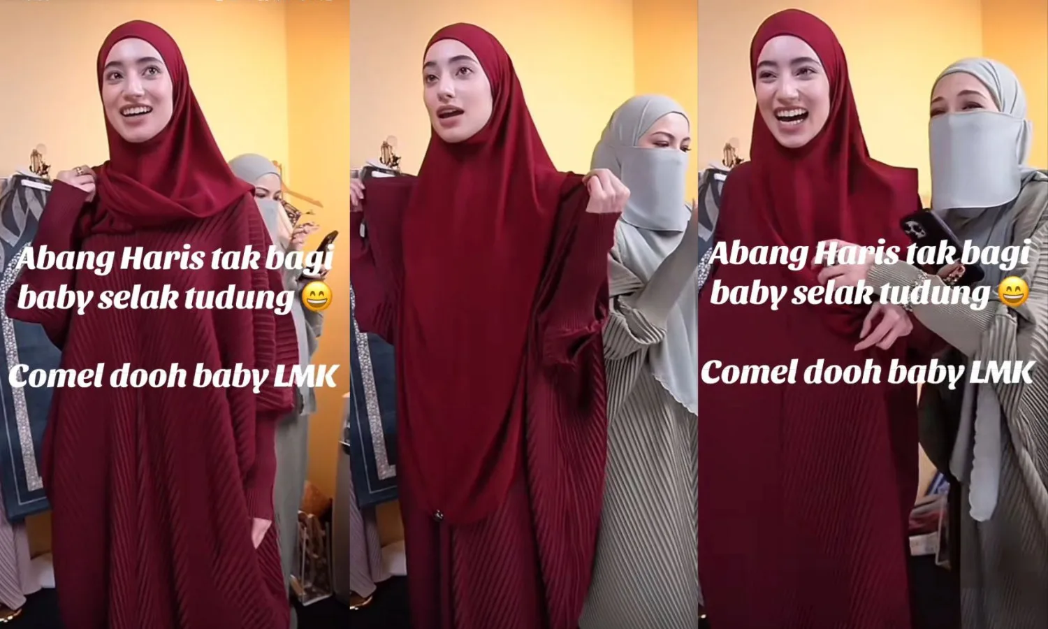 In the now-viral video, Ameera can be seen wearing a red abaya dress and hijab while promoting the outfit to viewers. As she lifted her headscarf slightly to show more of the dress’s front details, PU Riz can be heard off-camera saying, “Ameera, let’s cover the front part and focus on showing the lower part.” With a playful tone, the 24-year-old influencer responded, “But then the viewers won’t be able to see it,” in her signature heavy Kelantanese accent.