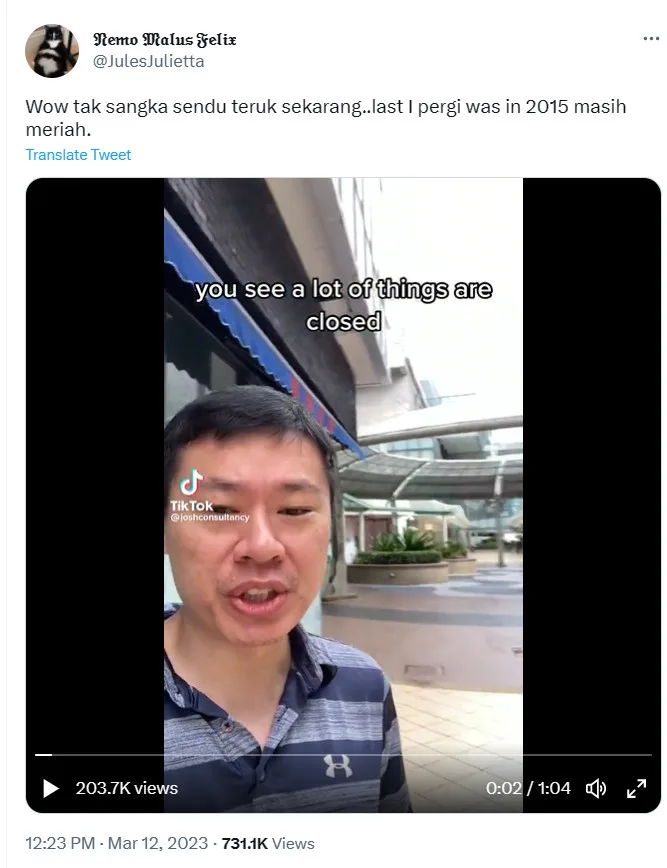 Josh’s video was reposted on Twitter and has received over 1.1k retweets at the time of writing. Many took to the comments to share their fond memories about the time when the place was booming with visitors back then. “I have no idea that (Puteri Harbour) is so depressing now. The last time I went there was in 2015, and it was still lively,” Twitter user @JulesJulietta remarked.