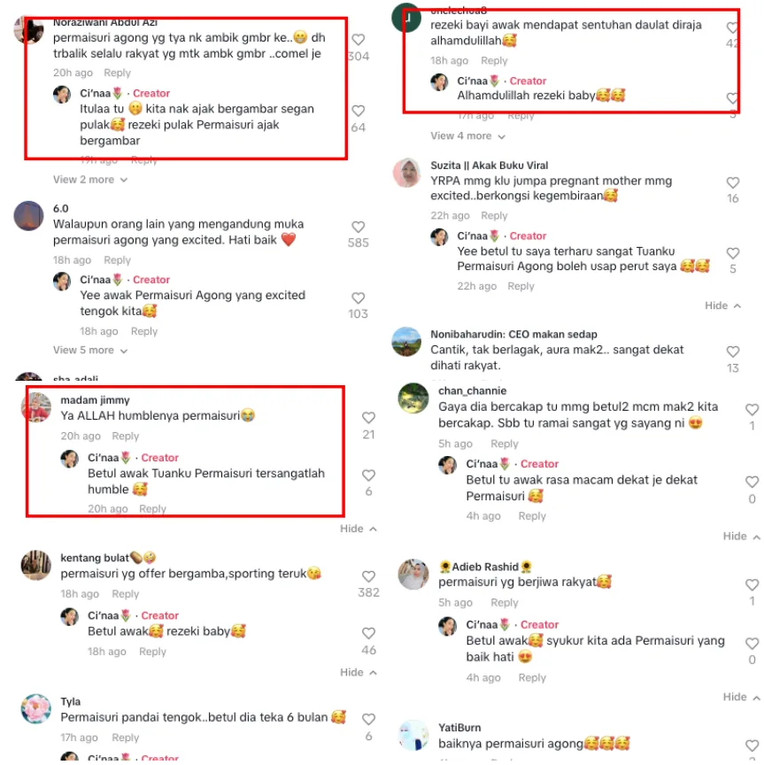 Yesterday (Wednesday, 11th October) the aforementioned lady, who goes by @asmalynaa, posted a video on TikTok of her experience of meeting the Queen, Raja Permaisuri Agong, Tunku Azizah. “I’m so blessed to have met Her Majesty and she even rubbed my belly,” she wrote in the video. As seen in the post above, Her Majesty greeted the pregnant woman before placing her hand on her belly while asking about her pregnancy.