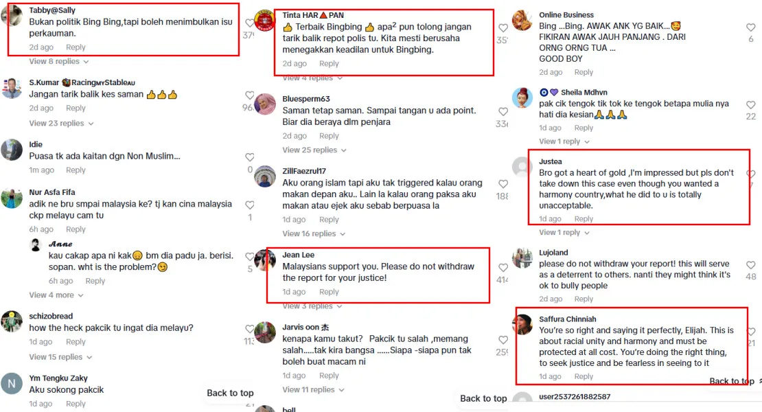 After the video was posted, netizens praised Elijah for promoting peace within the community. However, many argued that, although the incident may not be political, it could still lead to racial division. Some advised the young man not to withdraw his police report and encouraged him to proceed with the court case to help prevent similar incidents from happening to others.