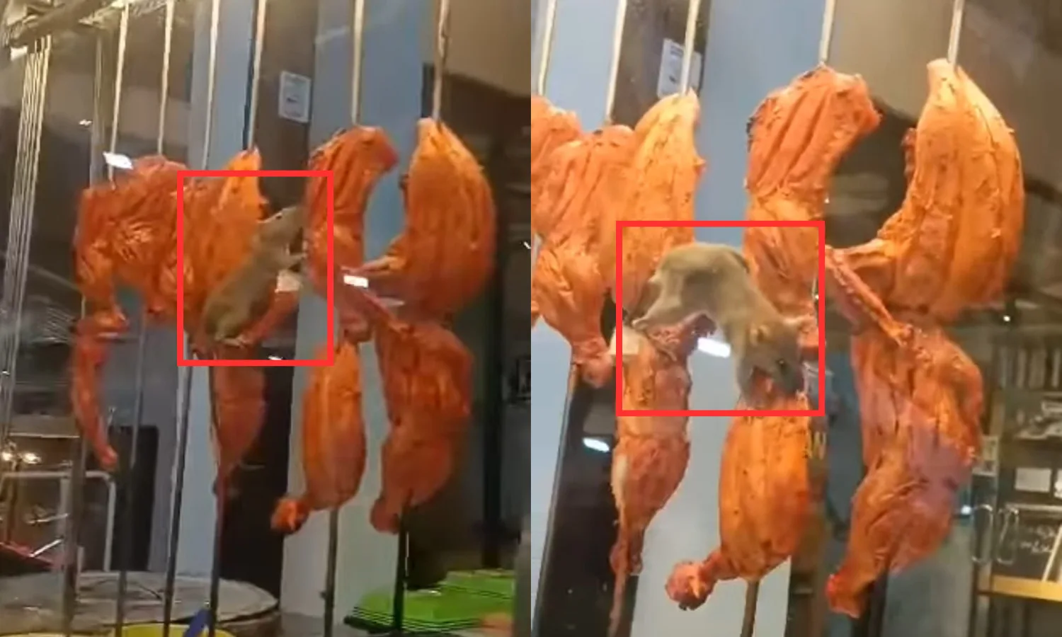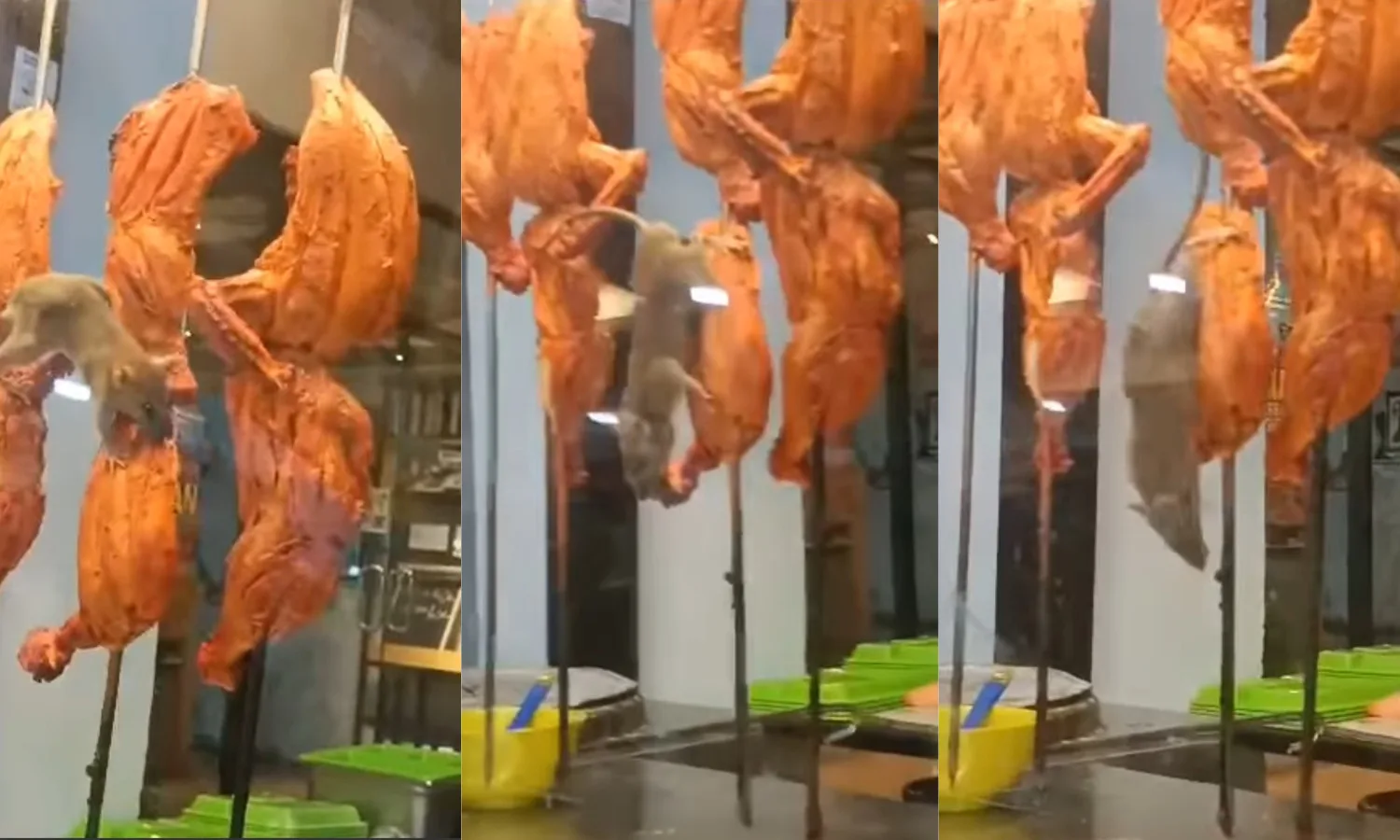 As shown in the footage below, the rat was seen nibbling on the Tandoori chicken that hung from the metal skewers left open in the glass display. The Tandoori stall was unattended, which is probably how the rodent managed to climb onto the skewers undisturbed.