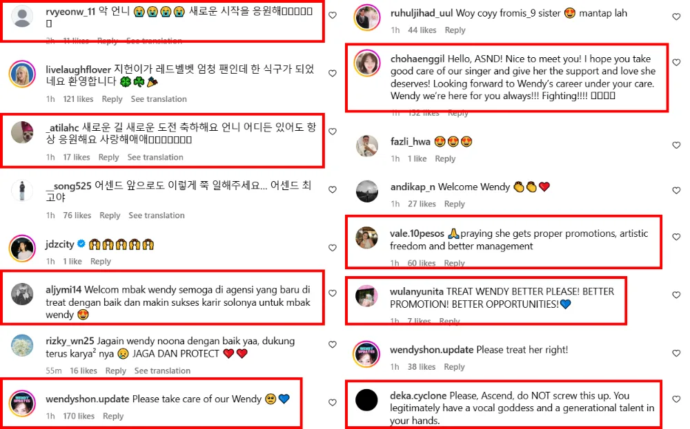 Many fans have reacted to the news, expressing excitement over Wendy’s new journey. However, some were surprised to hear that the singer chose to sign with a start-up company rather than an established agency. For those curious, ASND Label was founded in January 2025 and currently manages the girl group Fromis_9 (프로미스나인) after the group’s contract with Pledis Entertainment expired on 31st December 2025.