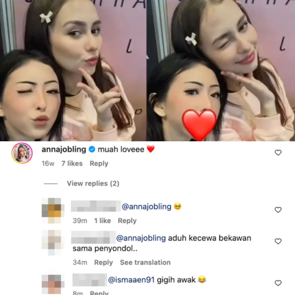 After digging through her socials, netizens found out that Aliff Aziz’s third woman is actually good friends with actress Anna Jobling. In a now-deleted post back in December, Sarah showed appreciation for her friendship with Anna by posting a photo of them together. The actress herself commented on the post saying, “Muah loveee ❤️”.